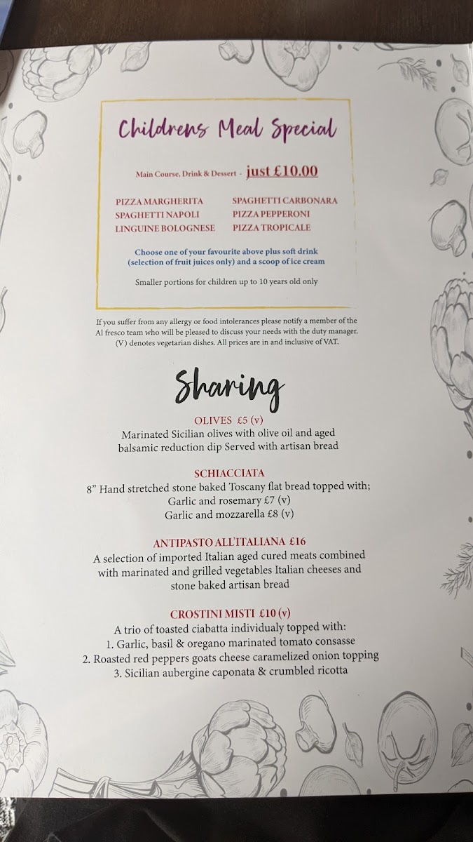Upon reviewing the Alfresco - Cleeve Menu, one is immediately drawn to the variety of choices that cater to both meat lovers and vegetarians alike. The menu features a well-curated range of Italian and Mediterranean-inspired dishes, with options like fresh seafood, handmade pastas, and hearty meats. One standout dish is the wood-fired pizza, made with a thin, crisp base and topped with flavorful, fresh ingredients, offering a genuine taste of Italy. The grilled lamb chops, another crowd favorite, are tender and packed with robust flavors, showcasing the skillful use of marinades and grilling techniques.